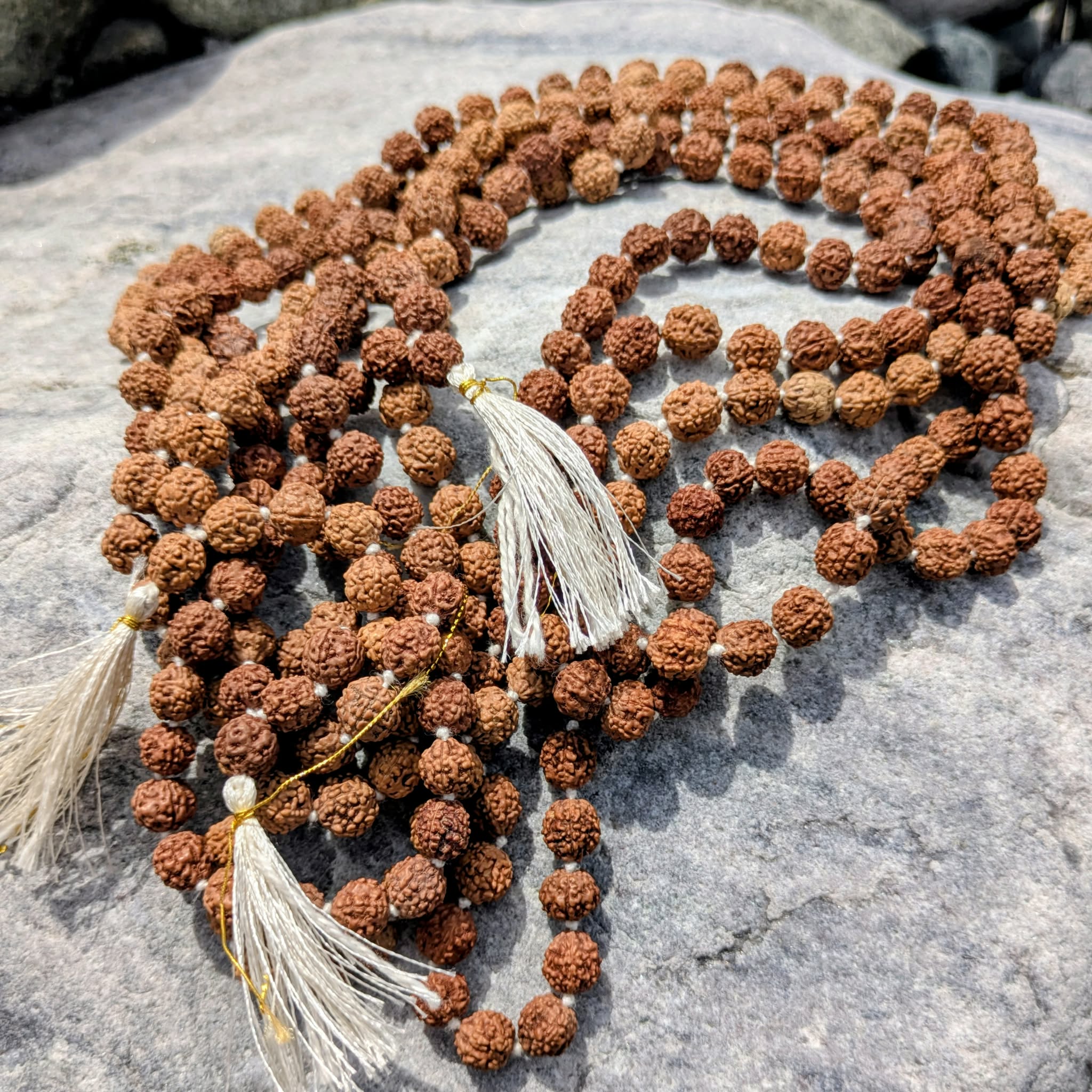 Mitte ütegi seemet pole nii palju erinevates vaimsetes lugudes mainitud kui seda on Rudraksha seeme. Himaalaja jalamilt leitud Rudraksha puu seemneid tuntakse ka kui Šiva pisaraid ning iidsete tekstide kohaselt on neil võim hinge tõsta. Rudraksha Mala kandmine on maagiline viis kehale, vaimule ja hingele jumaliku kaitse andmiseks. Kui me arutame Rudraksha nime lahti, on sõna Rudra, Lord Shivale antud teine nimi ja Ksha tähendab sanskriti keeles pisaraid. Öeldakse, et lord Shiva laskus kunagi sügavasse meditatsiooni, mis keskendus kõigi elusolendite heaolule. Meditasioonist välja tulles valas ta pisaraid, kuna hakkas mõistma elu kannatusi. Maa neelas need pisaraid ja neist said seemned, millest Rudraksha puu olla kasvama hakanud. Ka Šiva kujutistes näeme tema keha ümber mähitud Mala palvehelmeid. Kanna Rudraksha Malat vastu nahka, et lasta magusatel iidsetel seemnetel täita Sinu süda armastusega, suurendada vastupidavust ja toita igat rakku selgusega, et elu läbi kergusega liikuda. Rudraksha Mala kasutamine meditatiivse praktika ajal on populaarne tava, et hoida Sind ühenduses ja keskendunud.