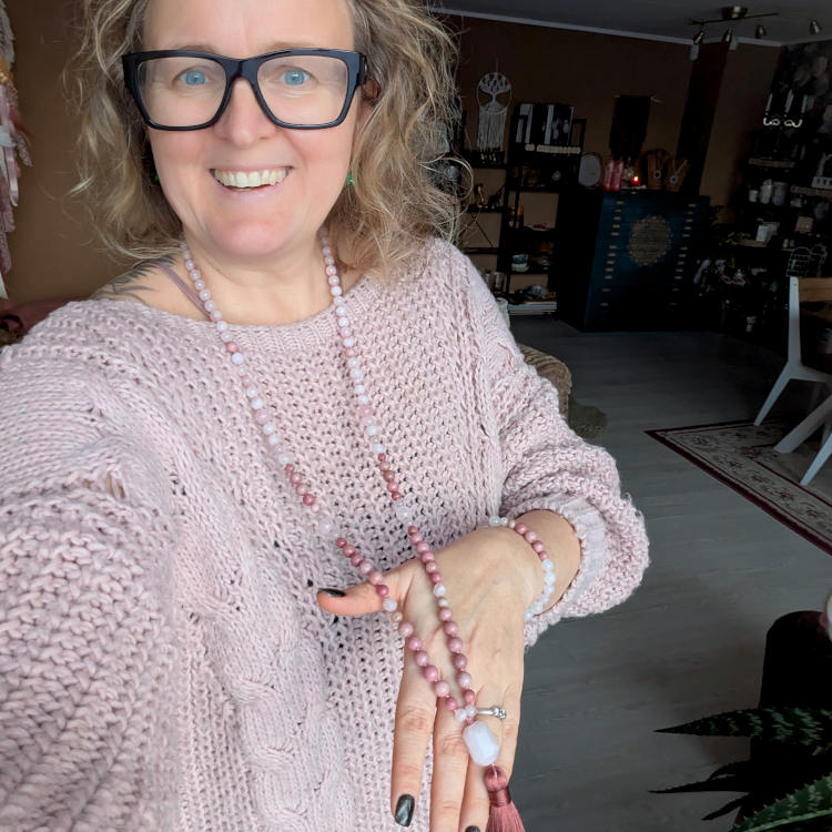See Mala sobib ideaalselt nii kinkimiseks kui ka isiklikuks väeankruks. Mala on rohkem kui ilus lihtsalt ehe. Tegemist on vaimse väeehtega, mille igasse sõlme on sisse punutud sõnum. See sõnum on seotud Sinuga, Sinu südame ja hingega, et toetada Sind just nüüd ja praegu, asjades, milles toetust vajad. Need on Sinu salasoovid.